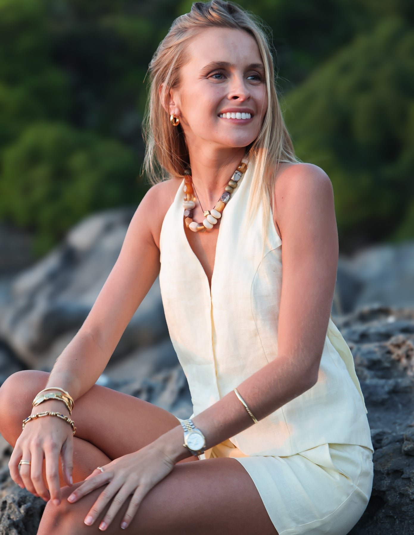 Collar de piedras naturales con formas irregulares, cuidadosamente ensambladas para crear una pieza artesanal y única.